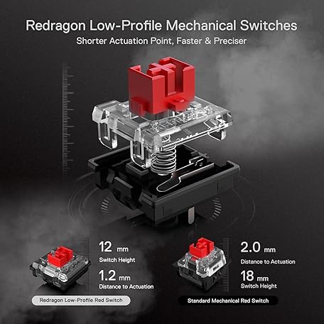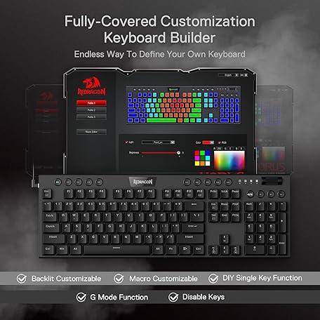 Thông tin sản phẩm Redragon K619 Horus RGB Mechanical Keyboard, Ultra Thin Designed Wired Gaming Keyboard w/Low Profile Keycaps, Dedicated Media Control & Linear Red Switch, Pro Software Supported
