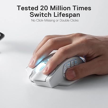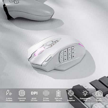 Thông tin sản phẩm Redragon M913 Impact Elite Wireless Gaming Mouse, 16000 DPI Wired/Wireless RGB Gamer Mouse with 16 Programmable Buttons, 45 Hr Battery and Pro Optical Sensor, 12 Side Buttons MMO Mouse,White