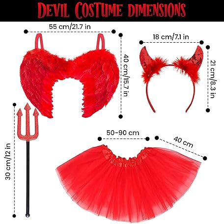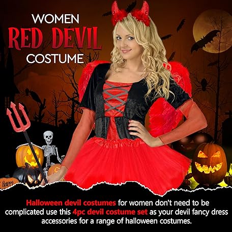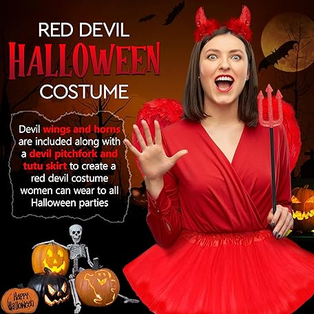 Sản phẩm REDSTAR 4pc Red Devil Costume Women Halloween Costumes - Red Wings Sequin Horns Headband Tutu Skirt and Pitchfork Halloween Ladies Devil Outfit - Fallen Angel Fancy Dress Accessories đang được bán với giá ưu đãi là $21.7782 tại nước Anh.
