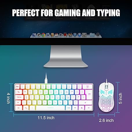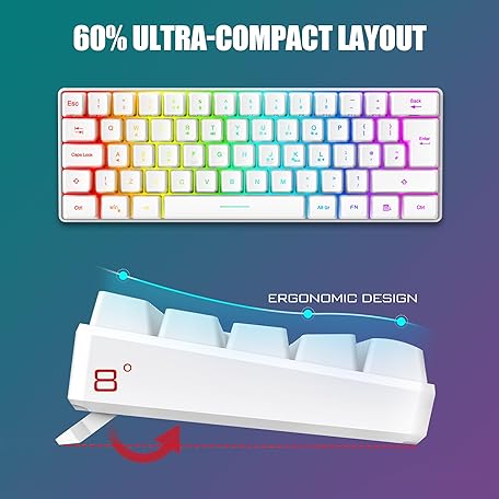 Thông tin sản phẩm RedThunder 60% RGB Gaming Keyboard and Mouse Combo,UK Layout Ultra Compact Backlit Mini Keyboard, Lightweight 7200 DPI Cellular Optical Mouse, Portable Wired Gaming Set for PC PS5 Gamers (White)