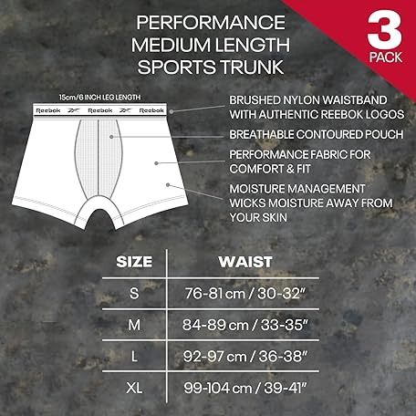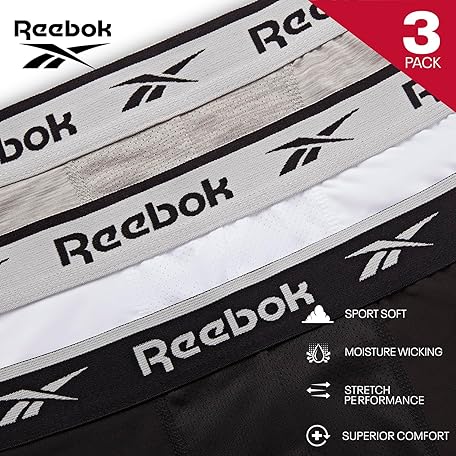 Thương hiệu Reebok là cái tên nổi tiếng được rất nhiều khách hàng trên thế giới chọn lựa. Với kiểu dáng đẹp mắt, sang trọng, sản phẩm Reebok Ainslie Boxers for Men | Pack of 3 Mens Sports Trunks, Breathable & Stretchable Underwear for Men | Multipack Boxer Shorts, Black/White/Grey Marl là sự lựa chọn hoàn hảo nếu bạn đang tìm mua một món cho riêng mình.