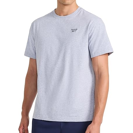 Reebok Apparel Mens Vector Embroidery Crewneck T-Shirt, Grey Heather, Large
