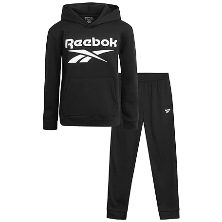 Reebok Boys Sweatpants Set - 2 Piece Fleece Pullover Hoodie Boys Sweatshirts and Youth Kids Jogger Sweatpants Athletic Sets, Black, 12
