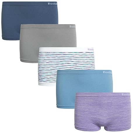 Reebok Girls' Underwear - Seamless Boyshort Panties (5 Pack), Violet/Denim/Stripes, S
