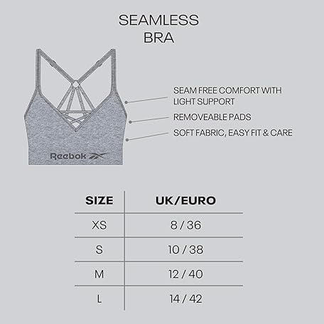 Thông tin sản phẩm Reebok Womens Seamless Sports Bra | Women's Sports Bras with Halter Neck Design | High Support, Non Wired and Comfortable Bra Available in 4 Size | Black, Grey Or White