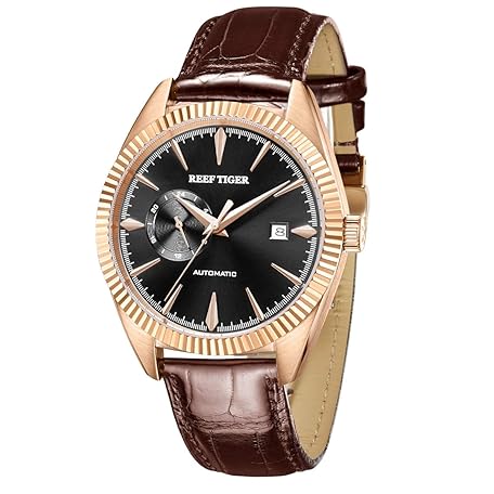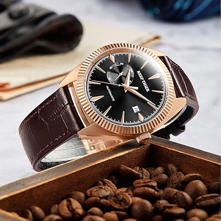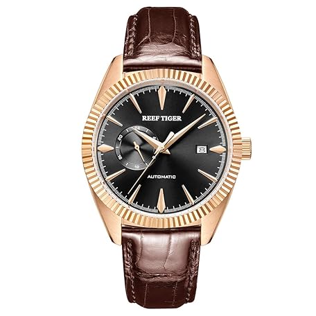 REEF TIGER Men's Watch Analogue Automatic Rose Gold Case with Leather Strap RGA1616