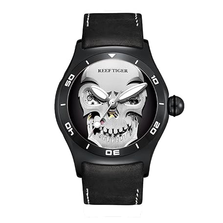 REEF TIGER /RT Mens Skeleton Automatic Mechanical Watch for Men Steel Top Brand Luxury Sport Male Leather Wrist Watches RGA70S7, RGA70S7-BBB, Mechanical