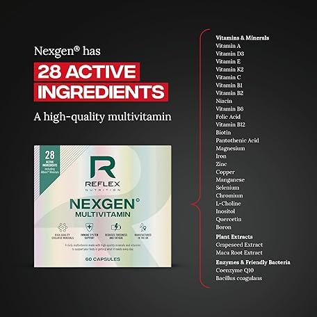 Sản phẩm Reflex Nutrition Nexgen® Multivitamins and Minerals for Immune Support (60 Caps)- Multi Mineral and Vitamins for Immune System - Vitamins for Tiredness and Fatigue - Vitamin D Magnesium Vitamin C Zinc đang được bán với giá ưu đãi là $13.8103 tại nước Anh.