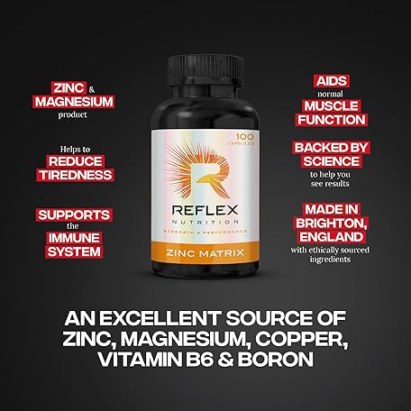 Thông tin sản phẩm Reflex Nutrition Zinc Matrix - Magnesium, Zinc, Vitamin B6, Boron & Copper Supplement - Fatigue and Tiredness Supplements - Normal Muscle Function - Support Metabolism and Immune System (100 Capsules)