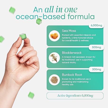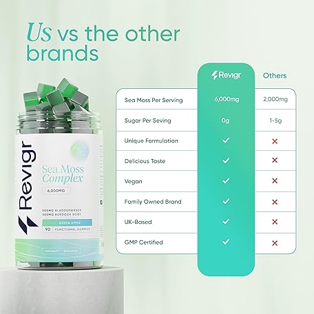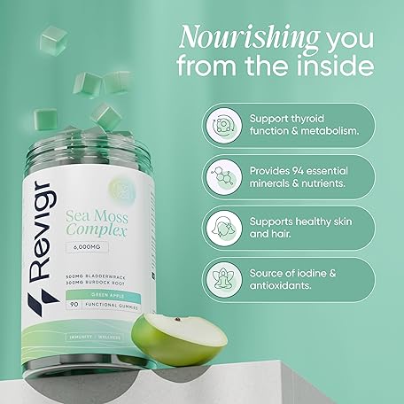 Thông tin sản phẩm Revigr, Max 6000mg, 90 Sea Moss Gummies, Added 500mg Bladderwrack & 300mg Burdock Root, Immune & Gut Support, Vegan & Sugar-Free, Green Apple Flavour (1 Month Supply)