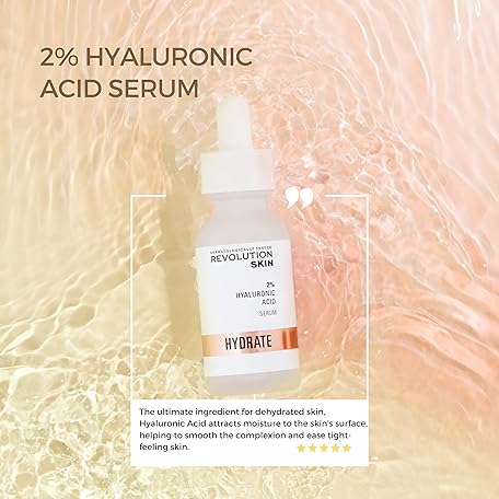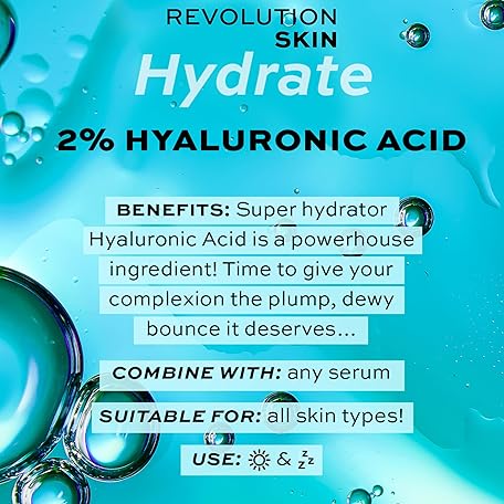 Thông tin sản phẩm Revolution Beauty London Skincare Hyaluronic Acid Serum, Plumps, Softens and Hydrates Skin, 2% Solution, Lightweight Face Fragrance Free, 30 ml