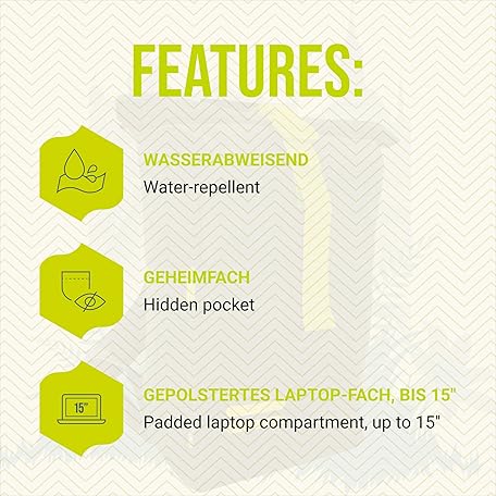 Thông tin sản phẩm REWIND Stylish, lightweight and water-repellent backpack for every day including laptop compartment (15 inches) and secret compartment, 46 x 29 x 16.5 cm, blue