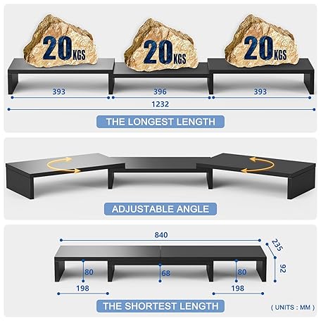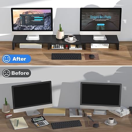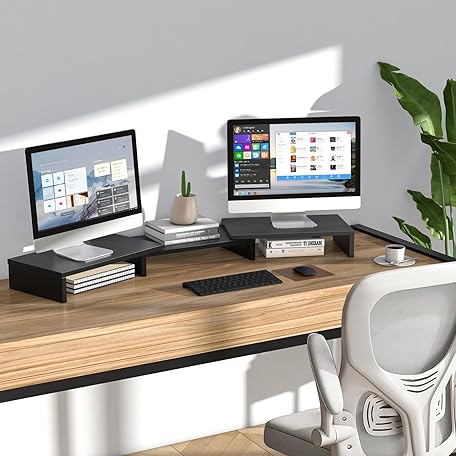 Thông tin sản phẩm RFIVER Dual Monitor Stand Riser for 2 Monitors - Desktop Organizer Stand - Adjustable Length & Swivel Angle Wooden - Multifunctional Oraganizer Computer for Laptop, PC, Computer, Printer - Black