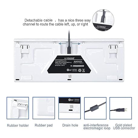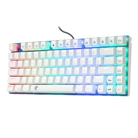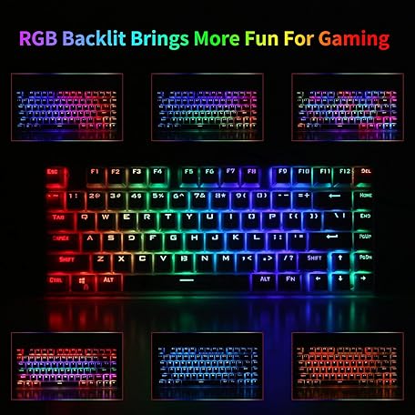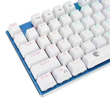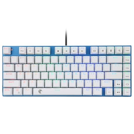Thông tin sản phẩm RGB Led Backlit Small Mechanical Keyboard, E-Yooso 81 Keys Tactile Brown Switch, Metal Top-Panel Tenkeyless Wired Keyboard, Blue and White (US-Layout)