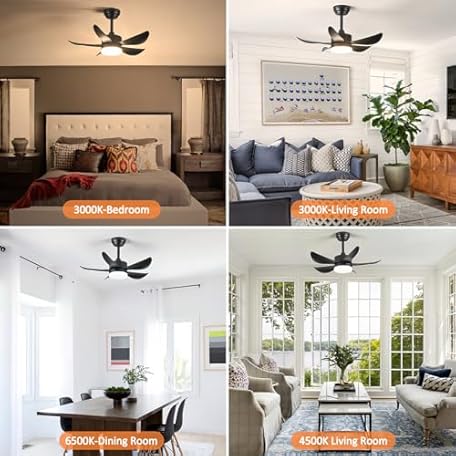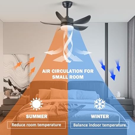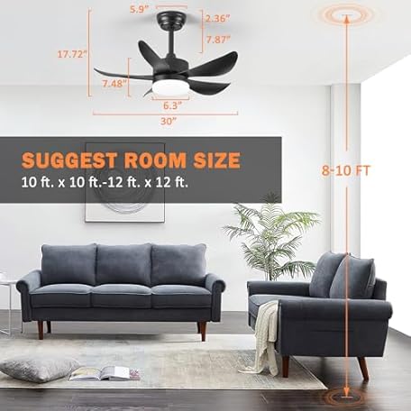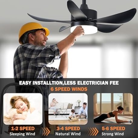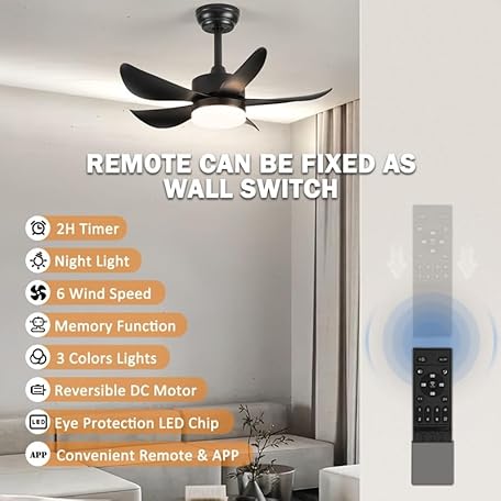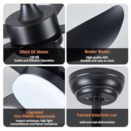 Thông tin sản phẩm RHEAFON Ceiling Fans with Lights and Remote,30 Inch Smart Ceiling Fan,Reversible,Noiseless,Black Ceiling Fan Light 6 Speeds & Timer Ultra-Quiet for Bedroom Living Room Kitchen Indoor/Outdoor Patio