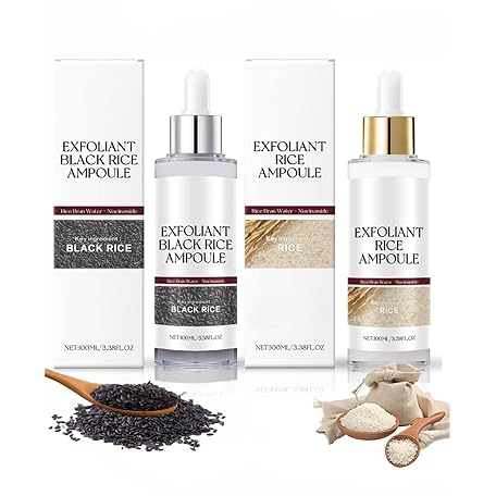 Rice Ampoule Duo,Peel Shot Glow Rice Ampoule Duo White rice ampoule+Black rice ampoule Soft Exfoliating Face and Body Scrub Dead Skin Cells, Blackheads Remover for All Skin Types