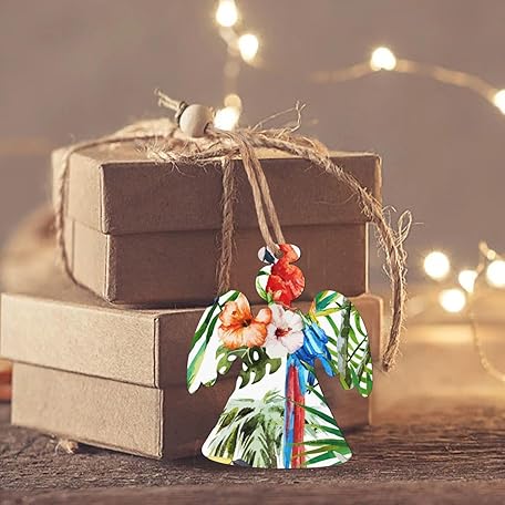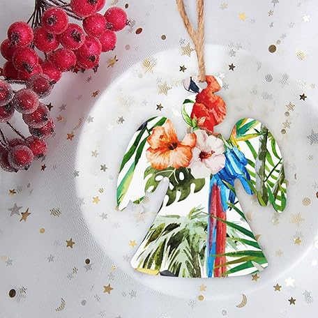 Sản phẩm Rich&Rabbit Toucans Parrot Palm Tree Leaves Print Christmas Wooden Ornaments Angel Shape Xmas Tree Decorations Home Decor Pendant đang được bán với giá ưu đãi là $11.9682 tại nước Anh.