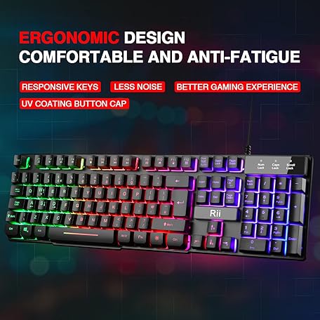 Sản phẩm Rii Gaming Keyboard,USB Wired Keyboard with Rainbow LED Backlit Mechanical Feeling for Working Gaming (UK Layout) đang được bán với giá ưu đãi là $20.3285 tại nước Anh.