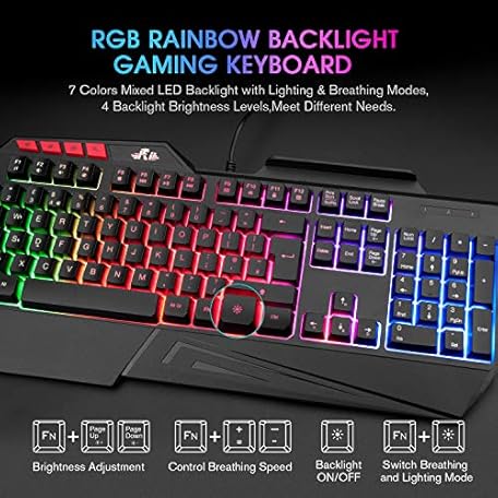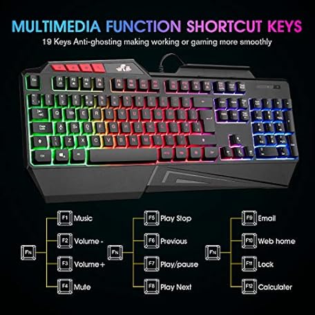 Thông tin sản phẩm Rii RK202 Gaming Keyboard,LED Rainbow Backlit Light up Keyboard With Membrane Keys,Spill-Resistant,for PC Computer,Laptop,Windows,Gamer,Xbox one,PS4,PS5-UK Layout