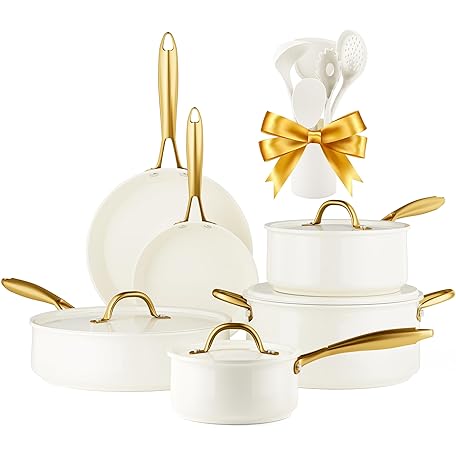 RIOVARM Non Stick Pot and Pan Set with Lids, Ceramic Cookware Set for Induction Hob, Non Toxic Frying Pans, PFOA Free Sauce Pans, Casserole with Spatulas, Saute Pan Suitable for All Stoves
