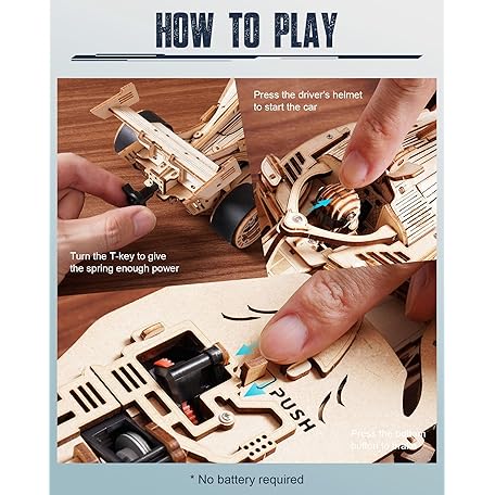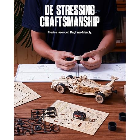Thông tin sản phẩm ROBOTIME 3D Wooden Puzzle Racing Car Model Kits for Adults, 5H Build, Gifts for Teens Kids, Mechanical Roaring Engine, 8-10M Forward, LK505