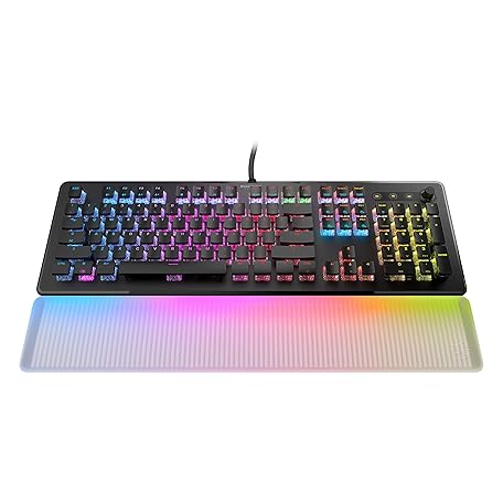 Roccat Vulcan II Max – Optical-Mechanical PC Gaming Keyboard with Customizable RGB Illuminated Keys and Palm Rest, Titan II Tactile Linear Switches, Aluminum Plate, 100M Keystroke Durability – Black