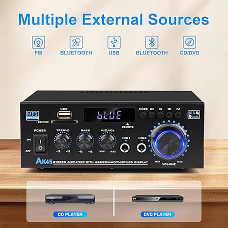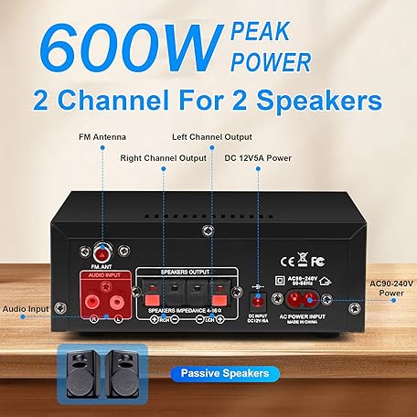 Thông tin sản phẩm Romicta Stereo Audio HiFi Amplifier, 600W Bluetooth Amplifier 5.0, 2 Channels 12V/230V, LCD Display, SD/USB, FM Radio – Ideal for Home, Car & Karaoke