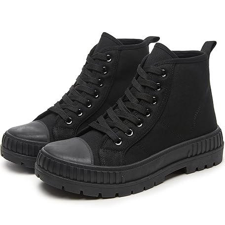 Rominz Women's White Platform Sneakers Fashion High Top Canvas Shoes for Women Black Lace-Up Canvas Sneakers Casual Platform Tennis Shoes, All Black, 9 UK