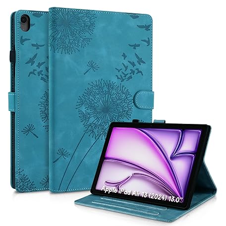 Rostsant For ipad air 13 2024 13 Inches/iPad Pro 12.9 Inches Case Dandelion Cover Premium PU Leather Flip Tablet Case Wallet Card Slots Protective Cover with Stand Function for ipad air 13 Blue