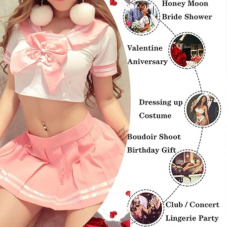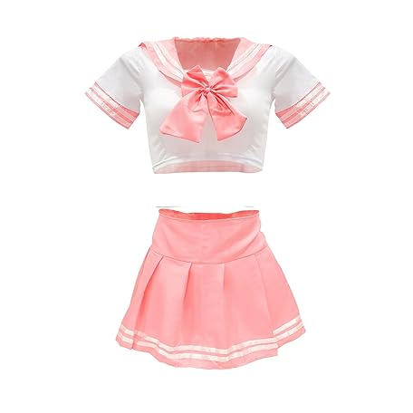 Thông tin sản phẩm ROSVAJFY Women's Pink Cosplay JK Uniform Top Miniskirt Set, Japanese Mini Sailor Costumes, Anime Role Play Lingerie Set, Short Sleeve Shirt + Mini Pleated Skirt