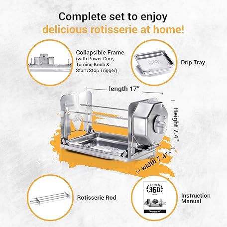 Thông tin sản phẩm ROTO-Q 360 (Stainless Steel),The Worlds First Non Electric Self-Rotating Rotisserie,NON ELECTRIC,NO BATTERY,Portable for Convection Oven, Air Fryer Oven, BBQ Rotisserie, Shawarma, and 5lbs Foods