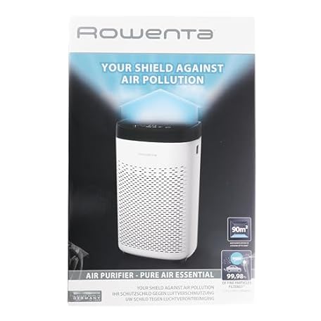 Thông tin sản phẩm Rowenta Pure Air Essential Air Purifier PU2530, CADR 230m³/h, Allergy+ Filter & Carbon Filter, Ideal for Home or Office, 3 Speed Settings, 8 Hour Timer, 40dBA, White