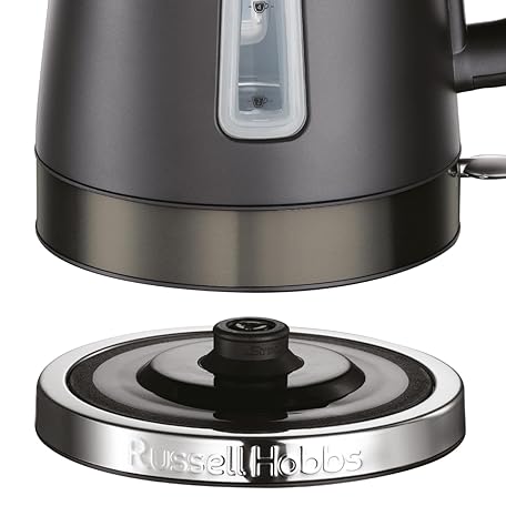 Thông tin sản phẩm Russell Hobbs Electric Kettle (1.7L, Stainless steel with matte design, Rapid boil, Removable anti-scale filter, Water level indicator, Perfect pour, 3000W) Matte Black 26140