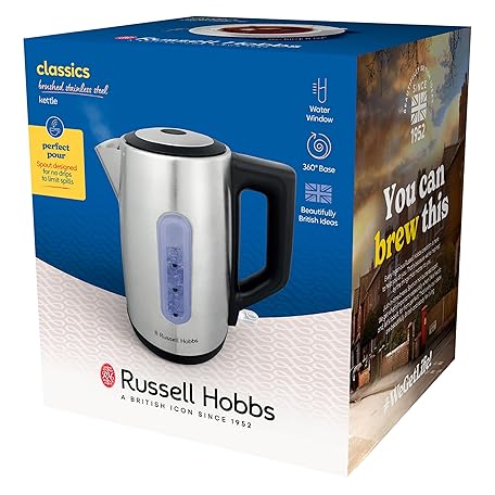 Sản phẩm Russell Hobbs Electric Kettle (For Hot Water, Tea or Coffee, 1.7L Capacity, Stainless Steel, Push to open lid, Perfect pour spout, Removable washable filter, Blue illumination, 3000W) Classics 27380 đang được bán với giá ưu đãi là $31.4247 tại nước Anh.