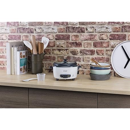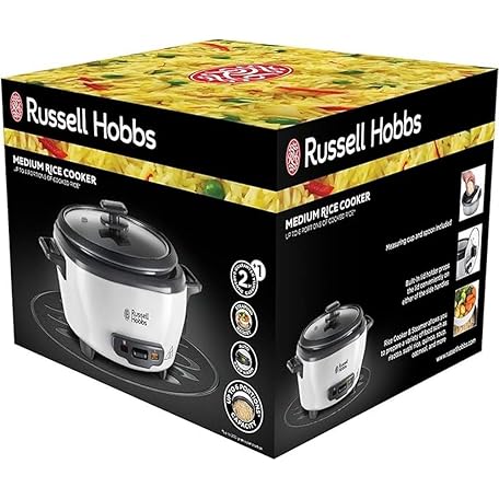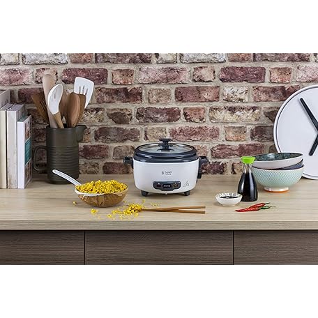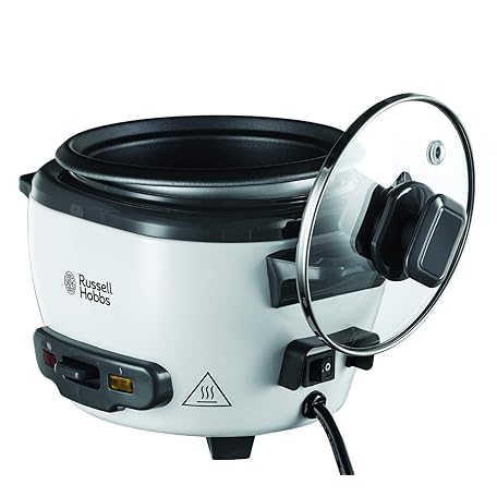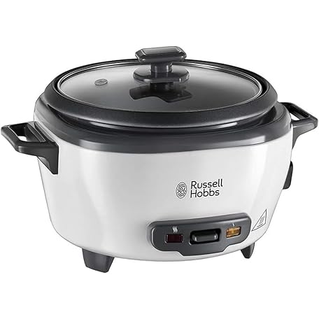Thông tin sản phẩm Russell Hobbs Medium Rice Cooker, Stainless Steel/White, Non-stick coating, dishwasher safe, 300 Watt) 27030-56, 6 servings at a time (up to 200 grams per serving)
