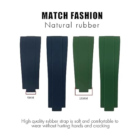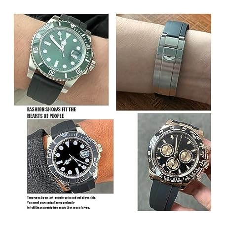 SAAWEE For Rolex Rubber Watch Strap 20mm,21mm with silver buckle Watch bands