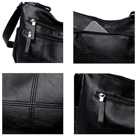 Sacmill Soft Ladies Leather Crossbody Bags Girls Lightweight Shoulder Handbags for Women Multi-Pocket with Adjustable Shoulder Strap