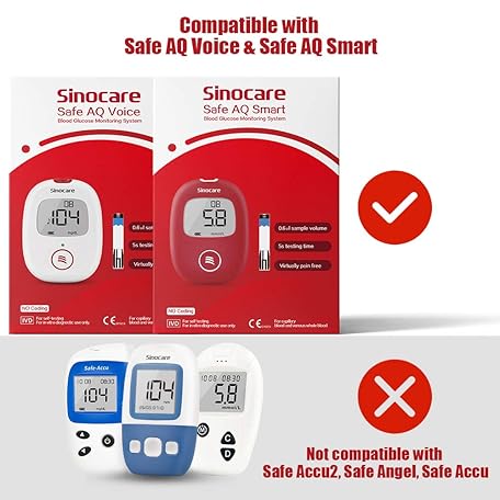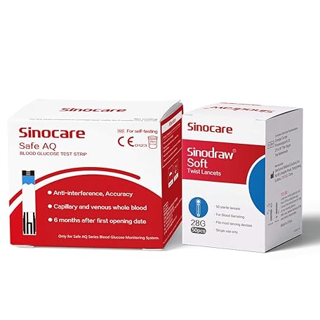 Thông tin sản phẩm Safe-AQ Blood Glucose Test Strips 50 Pack & Lancets 50 Pack, No Coding Required, 0.6µL Sample Size, 24-Month Shelf Life, Compatible with Sinocare Safe-AQ Smart & Voice Blood Sugar Monitors