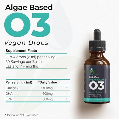 Sản phẩm SafeFine Omega 3 Liquid Vegan Drops - DHA from Algae Oil - 60 ml Dropper Bottle - 2000 mg per Serving Plant Based Algae Source Supports Heart Brain & Eyes đang được bán với giá ưu đãi là $27.6315 tại nước Anh.