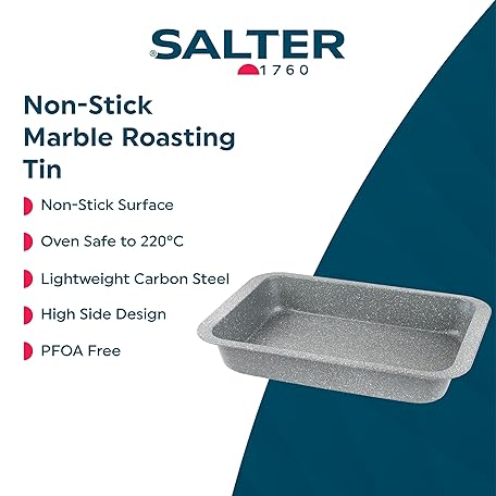 Thông tin sản phẩm Salter BW02774G Marblestone Roasting Tin – 36cm Non-Stick Roaster, Lightweight Carbon Steel, Easy Wipe Clean, High Side Rectangular Roasting Tray, Oven Safe to 220°C, PFOA Free, Deep Baking Pan