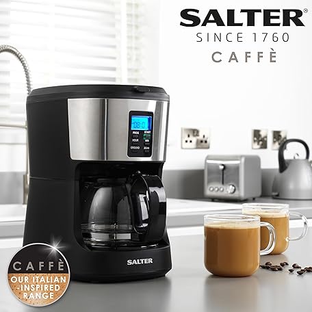 Thương hiệu Salter là cái tên nổi tiếng được rất nhiều khách hàng trên thế giới chọn lựa. Với kiểu dáng đẹp mắt, sang trọng, sản phẩm Salter EK4368 Bean to Jug Coffee Machine – Electric Coffee Grinder, 750ml Filter Coffee Maker with Reusable Filter, Digital Display with Programmable Timer, Keep Warm and Auto-Shut Off Function, Black là sự lựa chọn hoàn hảo nếu bạn đang tìm mua một món cho riêng mình.