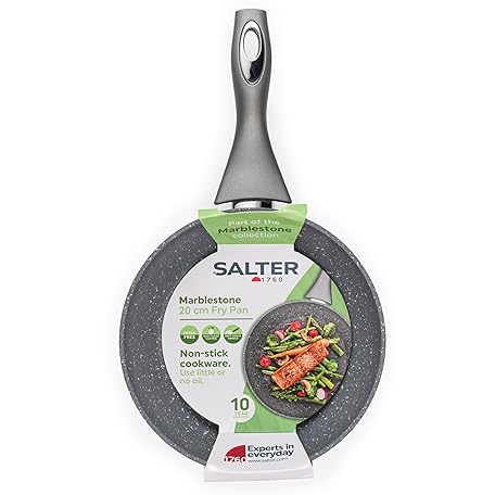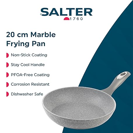 Thông tin sản phẩm Salter Marblestone 20 cm Frying Pan – Non-Stick, Healthy Marble Effect Pan, PFOA-Free, Corrosion Resistant Forged Aluminium, Suitable for All Cooking Hobs, Dishwasher Safe, Stay Cool Handle