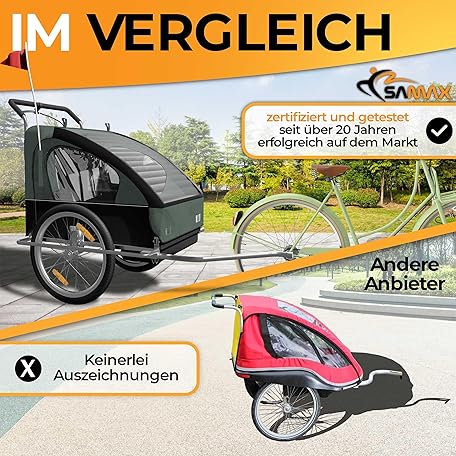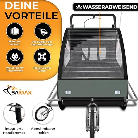 Thương hiệu SAMAX là cái tên nổi tiếng được rất nhiều khách hàng trên thế giới chọn lựa. Với kiểu dáng đẹp mắt, sang trọng, sản phẩm SAMAX Child Bike Trailer Jogger with Suspension Stroller là sự lựa chọn hoàn hảo nếu bạn đang tìm mua một món cho riêng mình.