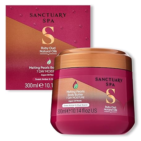 Sanctuary Spa Ruby Oud Melting Pearl Body Butter with Shea Butter & Argan Oil, No Mineral Oil, Cruelty Free & Vegan Body Moisturiser for Women, 300g