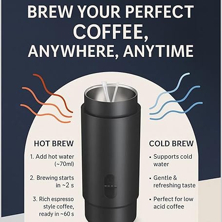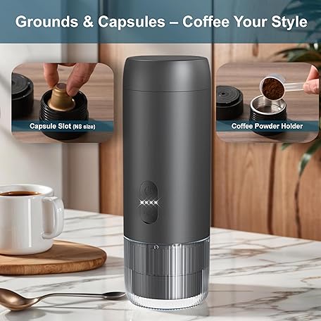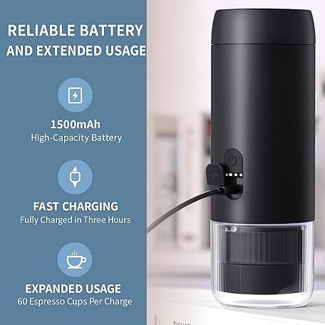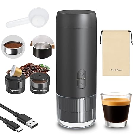 Thông tin sản phẩm Saraudy Portable Espresso Maker, 20 Bar, Travel Coffee Maker with USB Charging, Compatible with Ground Coffee & Capsules (NS), Waterproof, for Camping, Hiking, RV, Car, Office