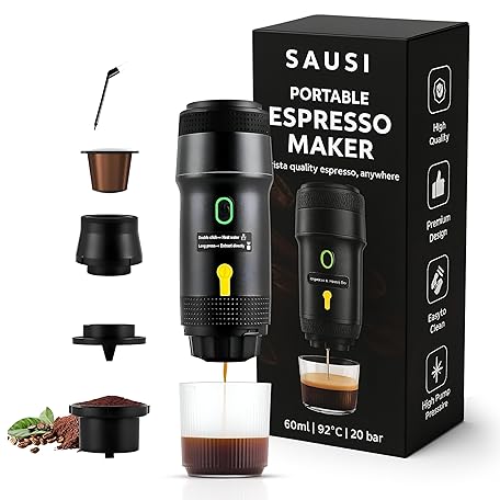 Sausi Portable Coffee Capsules for Travel - Electric Espresso Coffee Maker for Camping and Truck, with Rechargeable Battery - Portable Mini Coffee Machine for Coffee Lovers (Black)