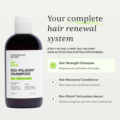 Thông tin sản phẩm Scandinavian Biolabs Bio-Pilixin® Hair Strength Shampoo For Women | Strengthens Hair, Eliminates Greasiness, Balances Scalp, Dermatologically Tested, Made in Denmark, 250 mL / 8.8 Oz
