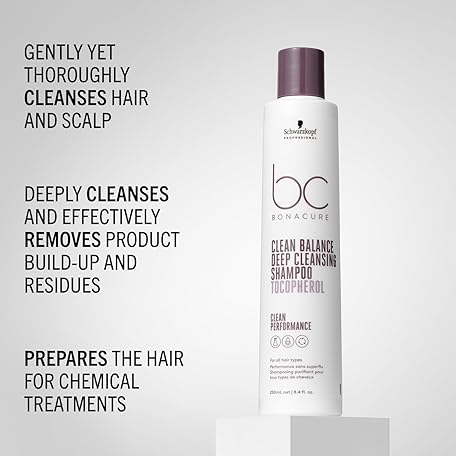 Schwarzkopf Professional Bonacure Clean Balance Deep Cleansing Shampoo All Hair Types Vegan Care Complex Tocopherol Protects Against Environmental Influences Fresh Hair Feeling Sulphate Free 250 ml