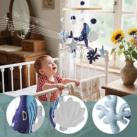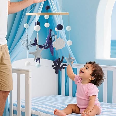 Thông tin sản phẩm Sea Mobile for Crib, Sea Themed Crib Mobile, Development Toys for Bedside Child Room Daycare Shower Bouncer Preschool Playpen Toddler Home Stroller