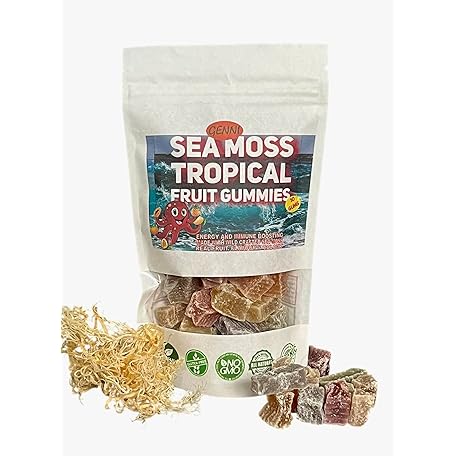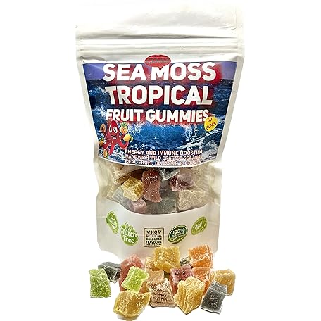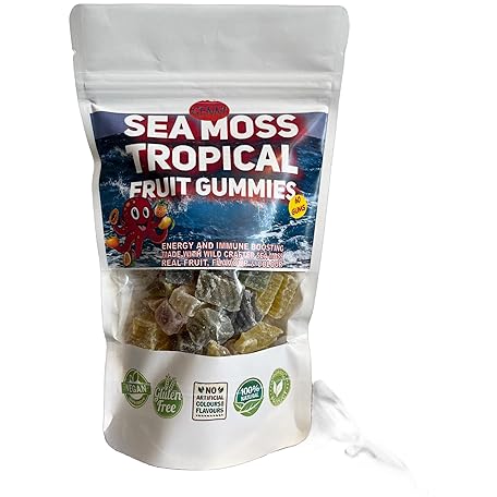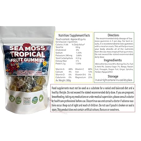 Sản phẩm Sea Moss and Tropical fruit Gummies | min 60 in a pack 300g | Vegan, Non GMO, Made with Real Fruit & wild crafted sea moss| Moringa Tea and Coconut Sugar Natural no perfect shaped gummie chemicals! đang được bán với giá ưu đãi là $27.5334 tại nước Anh.